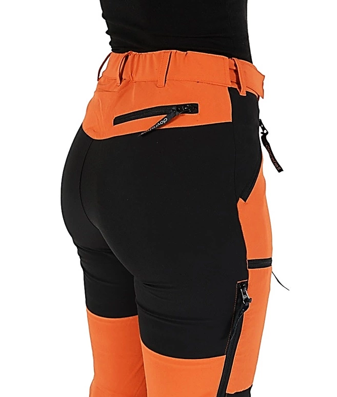 Custom Fit ulkoiluhousuissa on molemmilla puolilla vyötäröä tarrasäätö, jolla voidaan housujen vyötärö säätää juuri omaan mittaan mahdollisen vyön lisäksi. Niissä on vetoketjulliset ylätaskut sekä isot vetoketjulliset reisitaskut. Vetoketjullinen takatasku. Lahkeissa tarrakiristys, joilla lahkeiden suu voidaan tarvittaessa säätää saappaan varren kanssa sopivaksi.