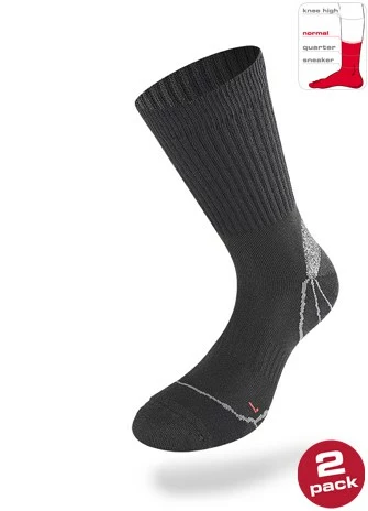 Lenzin Trekking 1.0 -sukkapaketti sisältää 2paria musta-harmaita sukkia.