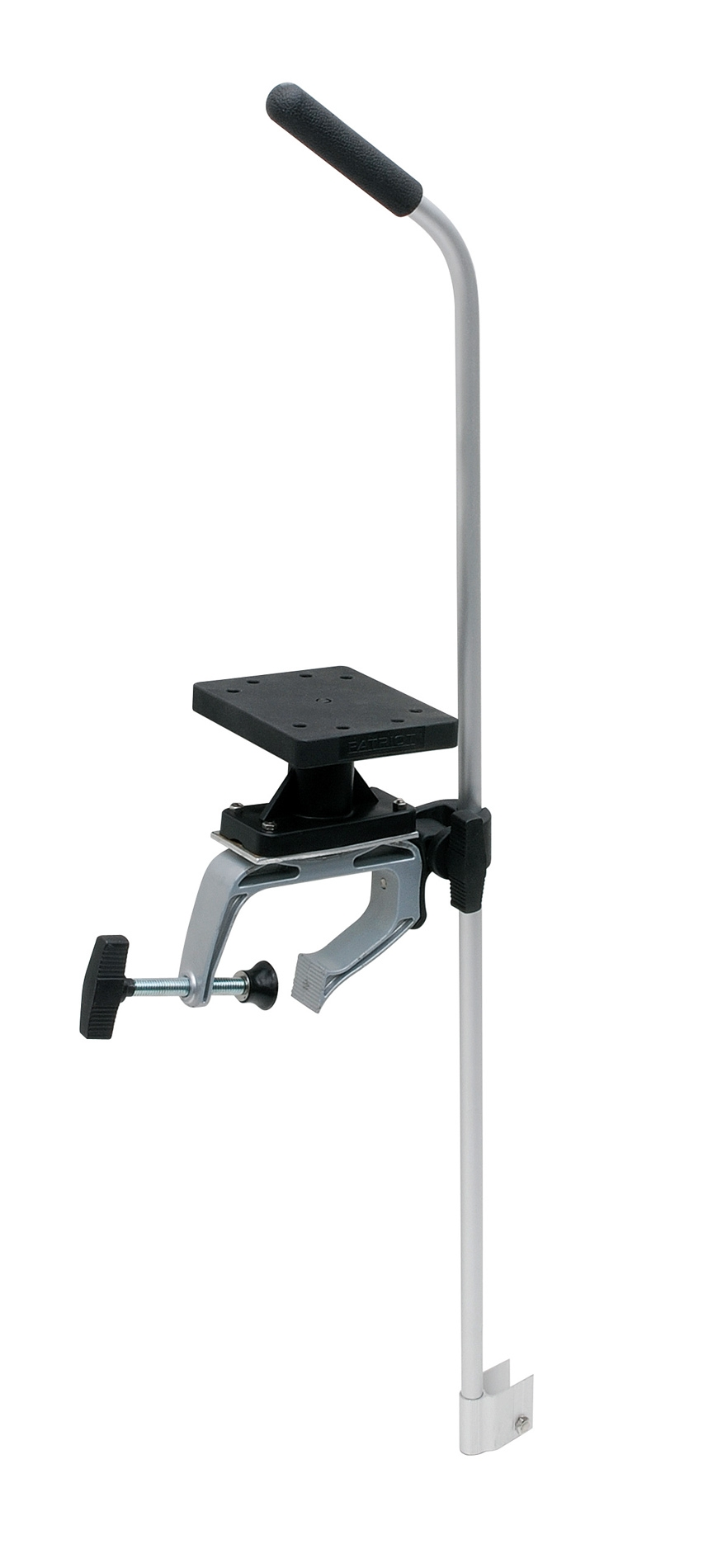 Helppo kiinnittää veneen kylkeen ja suunnata haluttuun suuntaan. Helppo korkeuden sääto. Mukana kaikuluotaimelle taso.