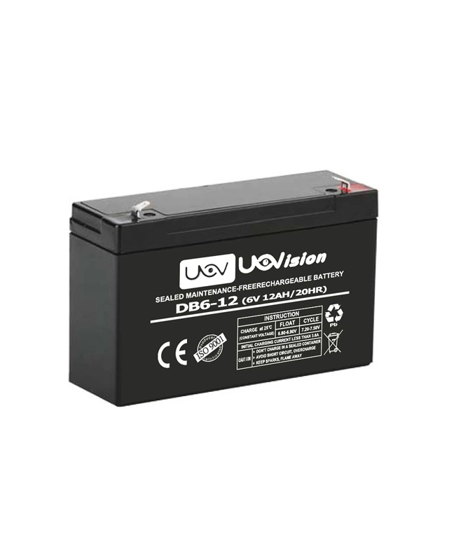 Uovision 6V riistakameran akun kuori on mustaa ABS kovamuovia. Täysin suljettu akku on huoltovapaa ja automaattisesti venttiilisäätöinen.