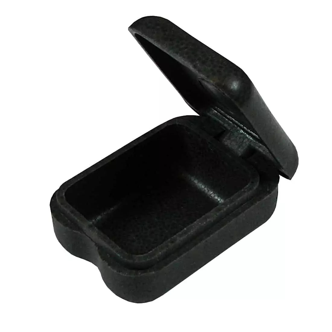 Koko n. 10 x 6 cm. Yksi osasto. Musta styrox, näkyy ainakin jos tippuu jäälle : )